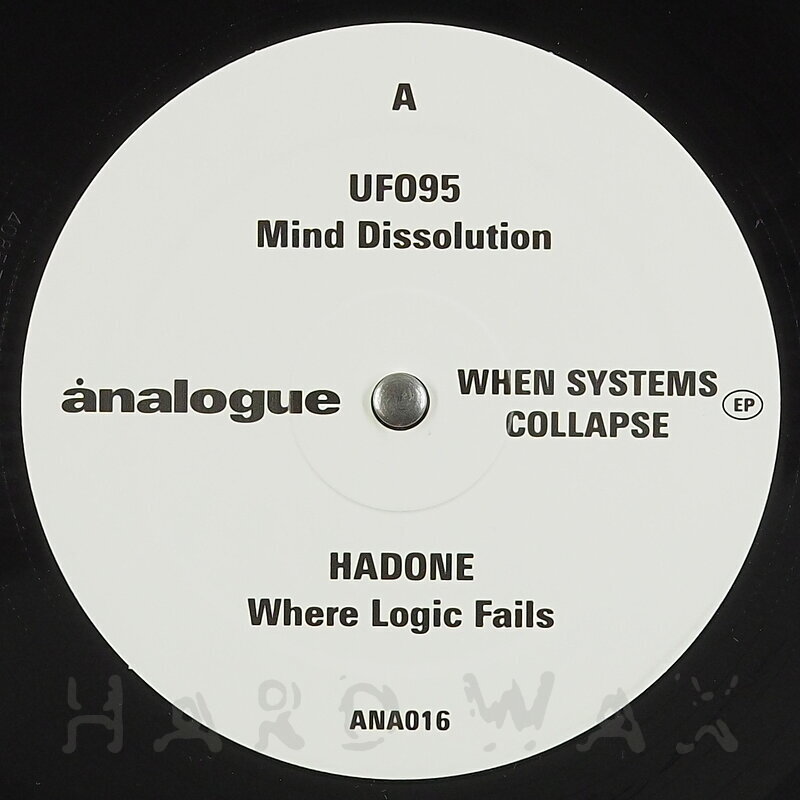 12"—12" € 15Analogue 016Label CatalogUFO95 & Hadone: When Systems Collapse EPRavey warehouse Techno 01 Ufo95: Mind Dissolution 02 Hadone: Where Logic Fails 03 Ufo95: System Explorer 04 Hadone: Despite Everything