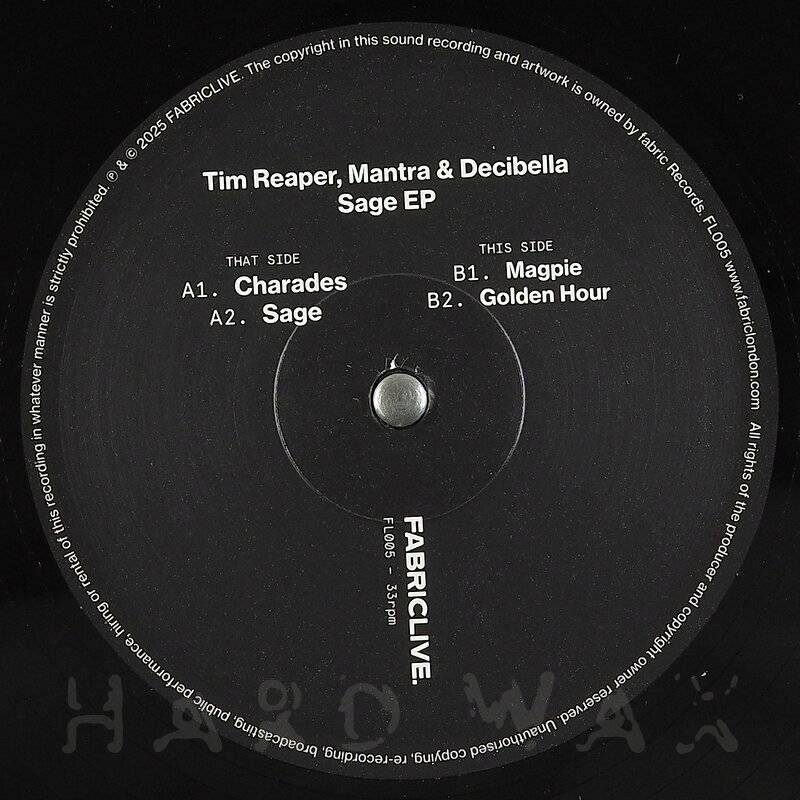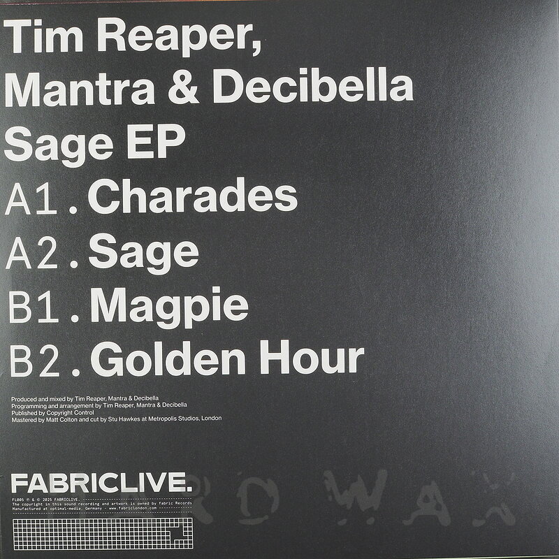 12"—12" € 15Fabriclive 005Label CatalogTim Reaper, Mantra & Decibella: Sage EPSuperb hard hitting drum & bass/ jungle tech A1 Charades A2 Sage B1 Magpie B2 Golden Hour