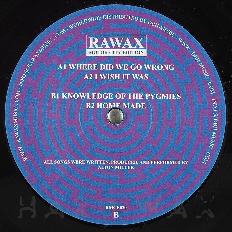 12"—12" € 15Rawax MCE 030Label CatalogAlton Miller: OTO CollectiveDelightful Detroit Deep House EP A1 Where Did We Go Wrong A2 I Wish It Was B1 Knowledge Of The Pygmies B2 Home Made