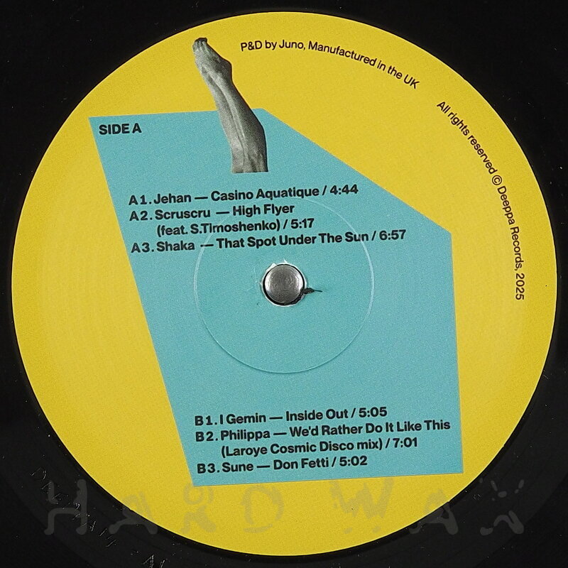 12"—12" € 20Deeppa 14Label CatalogVarious Artists: Music Makes Me Deeppa 5 Years Vol.1Bright deep smooth jazzy house A1 Jehan: Casino Aquatique A2 Scruscru: High Flyer A3 Shaka: That Spot Under The Sun B1 I Gemin: Inside Out B2 Philippa: We’d Rather Do It Like This (Laroye Cosmic Disco Mix) B3 Sune: Don Fetti