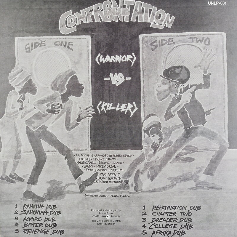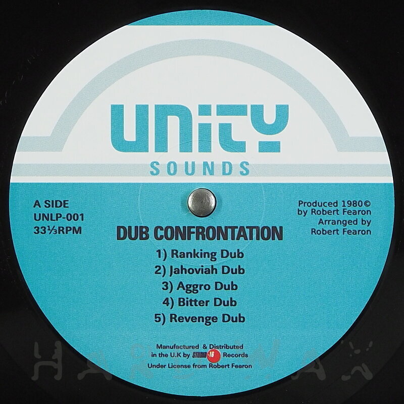 LP—LP € 20Unity Sounds LP 001Reggae / A07Jah Shaka Vs Fat Man: Dub ConfrontationWarrior versus Killer, classic 80s dub set w/ mixes laid down by Prince Jammy at King Tubby's A1 Ranking Dub A2 Jahoviah Dub A3 Aggro Dub A4 Bitter Dub A5 Revenge Dub B1 Repatriation Dub B2 Chapter Two B3 Dreader Dub B4 College Dub B5 Afrika Dub