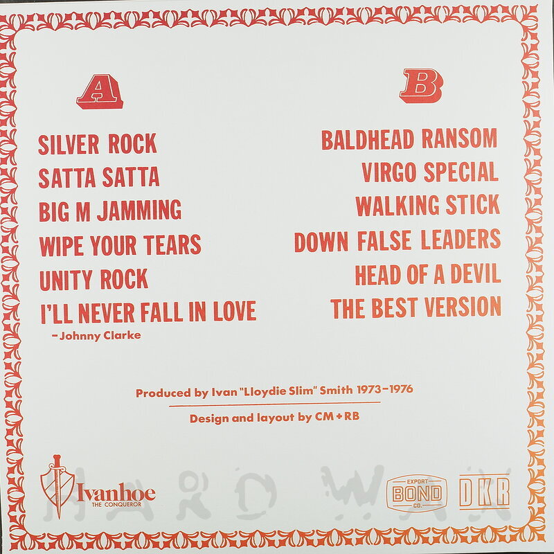 LP—LP € 24Ivanhoe the Conqueror DKR-282Reggae / L09Lloydie Slim: The Lion Dub Wise LPSuperb 70s dub set from the vault w/ two additional tracks added A1 Silver Rock A2 Satta Satta A3 Big M Jamming A4 Wipe Your Tears A5 Unity Rock A6 Johnny Clarke: I'll Never Fall In Love B1 Baldhead Ransom B2 Virgo Special B3 Walking Stick B4 Down False Leaders B5 Head Of A Devil B6 The Best Version