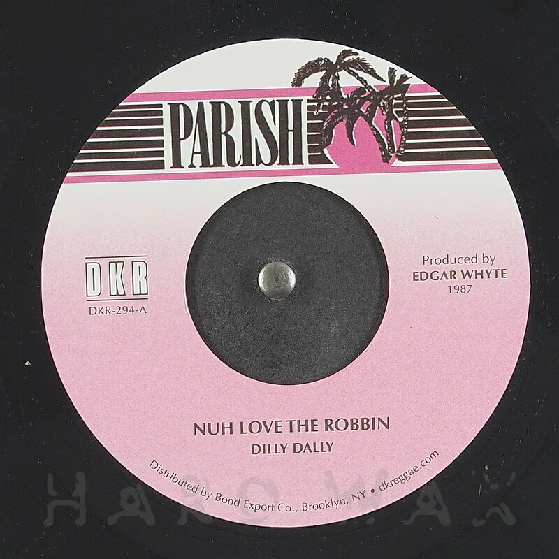 7"—7" € 12Parish DKR-294Reggae / L09Dilly Dally: Nuh Love the RobbinHard-driving, late 80s digi killer properly reissued A1 Nuh Love the Robbin B1 Version