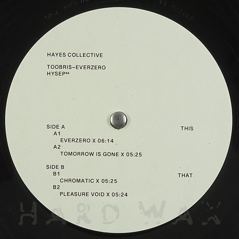 12"MP3AIFF12" € 14.5Hayes EP64Label CatalogToobris: EverzeroEnergetic, tripped-out Techno tools A1 Everzero A2 Tomorrow is Gone B1 Chromatic B2 Pleasure Void12"MP3AIFFMP3AIFF6 AIFFs € 10.56 MP3s € 7.5Hayes HYSEP64Toobris: EverzeroEnergetic, tripped-out Techno tools Everzero6:14AIFF € 1.75MP3 € 1.25 Tomorrow is Gone5:25AIFF € 1.75MP3 € 1.25 Chromatic5:25AIFF € 1.75MP3 € 1.25 Pleasure Void5:24AIFF € 1.75MP3 € 1.25 North Bends5:25AIFF € 1.75MP3 € 1.25 Distant Ties5:41AIFF € 1.75MP3 € 1.25
