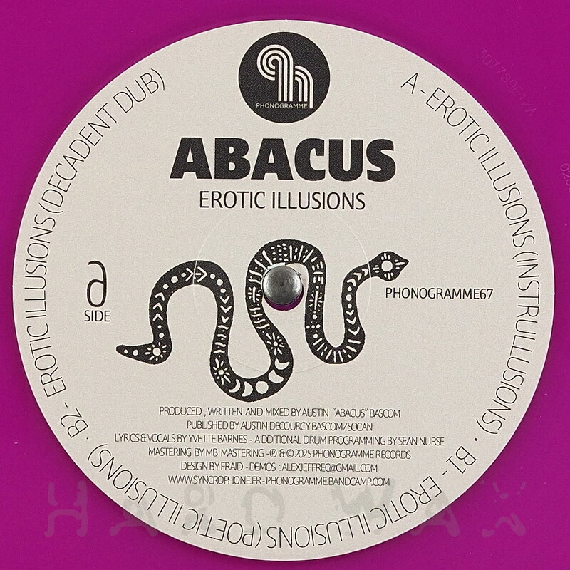 12"—12" € 18Phonogramme 067Label CatalogAbacus: Erotic IllusionsReissue of deep House classic previously on Fragile in 1995 A1 Erotic Illusions (Instrullusions) B1 Erotic Illusions (Poetic Illusions) B2 Erotic Illusions (Decadent Dub)