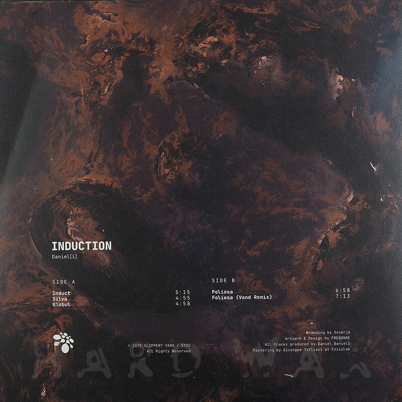 12"—12" € 19.5Slippery Yard 002Label CatalogDaniel[i]: InductionSlick, driving, trancy, percussive Techno hypnotics A1 Induct A2 Silva A3 Globul B1 Foliosa B2 Foliosa (Vand Remix)