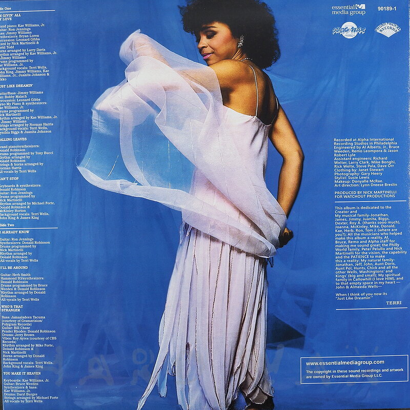 LP—LP € 26Sonic Wax 901891DiscoTerri Wells: Just Like Dreamin’Reissue of classic Philly sounds A1 I’m Givin’ All My Love A2 Just Like Dreamin’ A3 Falling Leaves A4 Can’t Stop B1 I Always Know B2 I’ll Around B3 Who’s That Stranger B4 You Make It Heaven