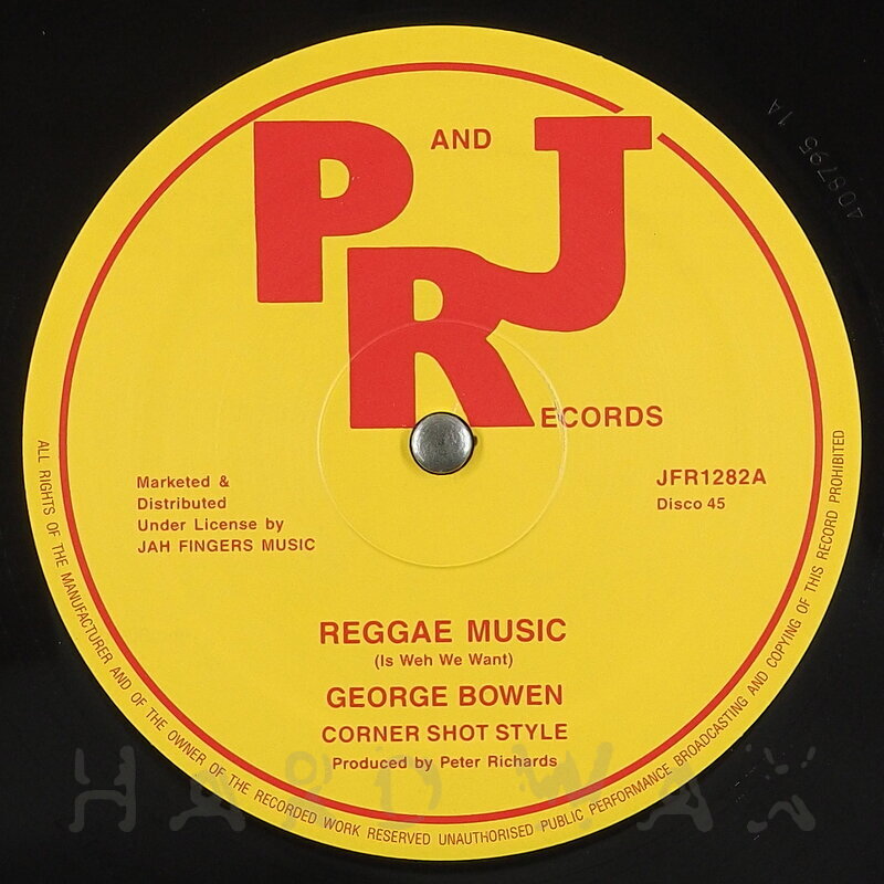 12"—12" € 16P & J JFR 1282Reggae / C8George Bowen: Reggae MusicReissue of ace, early 80s UK reggae one off w/ DJ Cut on the flip A1 Reggae Music B1 Movement & Ranking Tipper: Reggae Music Gone Clear
