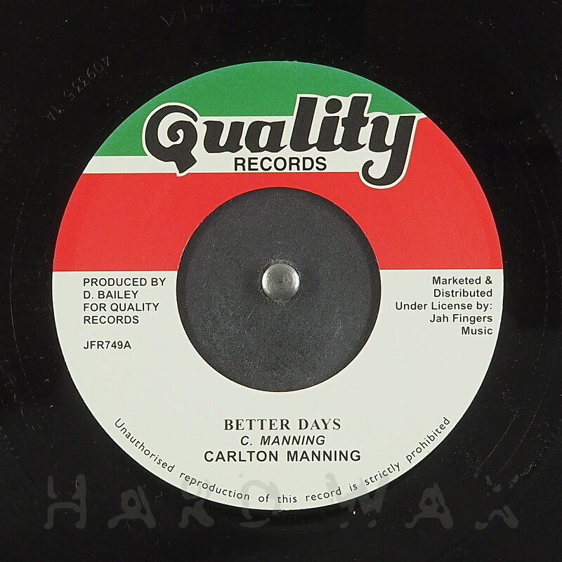 7"—7" € 15.5Quality JFR 749Reggae / C8Carlton Manning: Better DaysSuperb 80s roots gem reissued, heavy dub A1 Better Days B1 Version