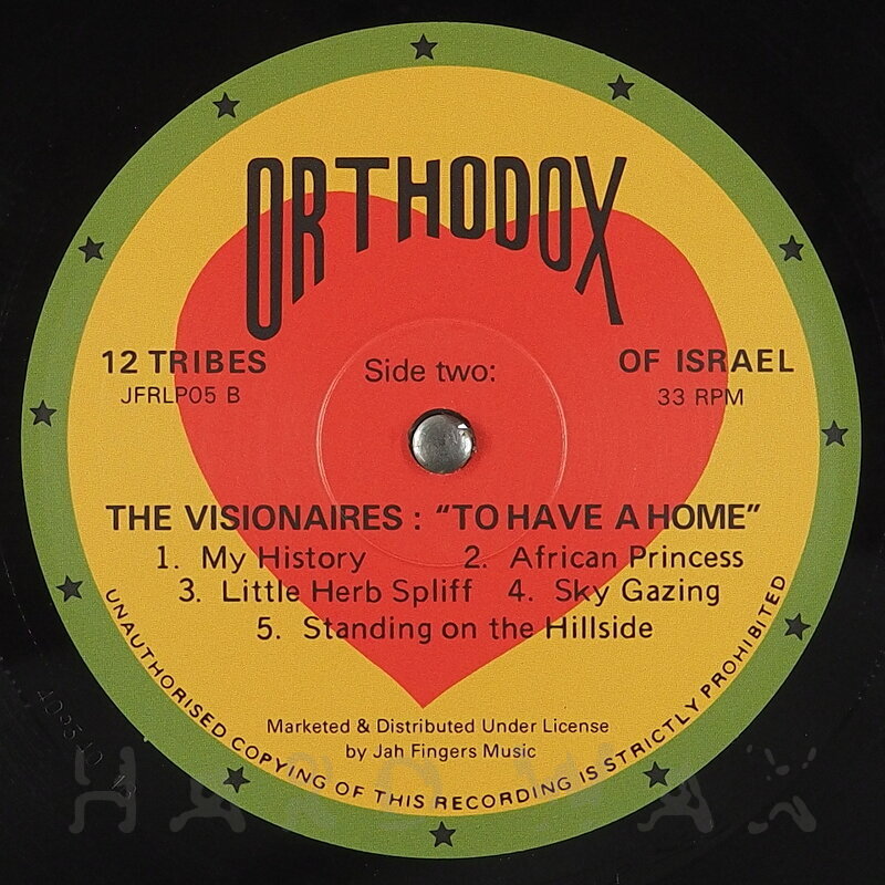 LP—LP € 28Orthodox JFR LP 05Reggae / C8The Visionaires: To Have A HomeSought-after early 80s roots vocal set properly reissued in the alternate mix version A1 To Have A Home A2 Travelling On A3 Marcus Garvey A4 Embarrassing A5 How Long O Lord B1 My History B2 African Princess B3 Little Herb Spliff B4 Sky Gazing B5 Standing On The Hillside