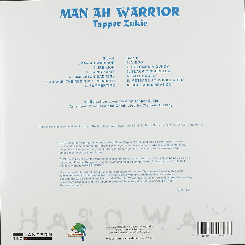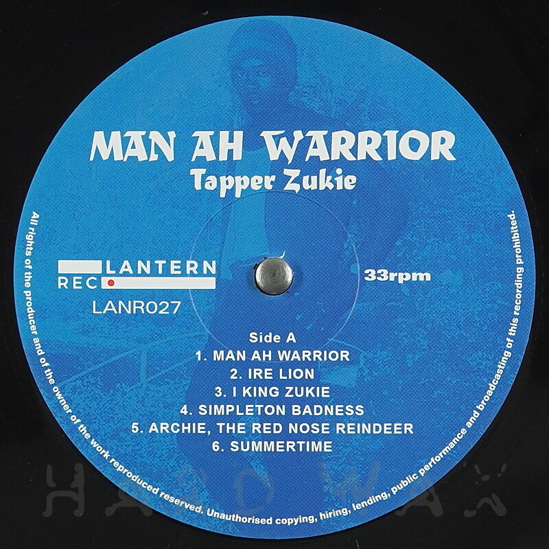 LP—LP € 20Lantern 027Reggae / A21Tapper Zukie: Man Ah WarriorSuperb mid 70s roots set A1 Man Ah Warrior A2 Ire Lion A3 I King Zukie A4 Simpleton Badness A5 Archie, The Rednose Reindeer A6 Summertime B1 Viego B2 Solomon A Gundy B3 Black Cindarella B4 Cally Dolly B5 A Message To Pork Eaters B6 Soul And Inspiration