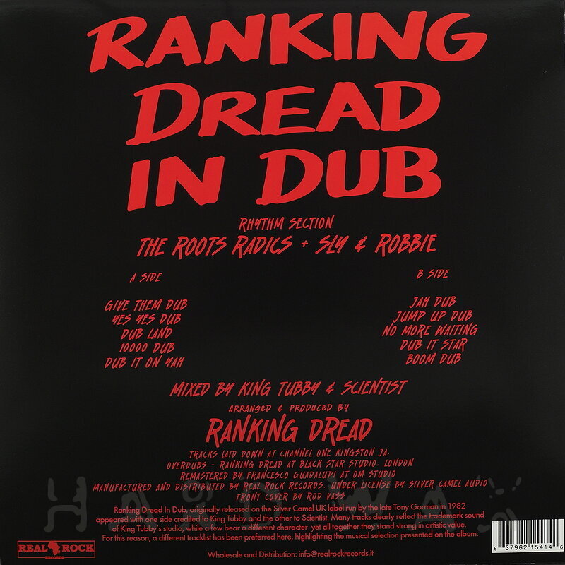 LP—LP € 29Real Rock LP 04Reggae / A10Ranking Dread: In DubReissue of ultra heavy, early 80s dub set A1 Give Them Dub A2 Yes Yes Dub A3 Dub Land A4 10000 Dub A5 Dub It On Yah B1 Jah Dub B2 Jump Up Dub B3 No More Waiting B4 Dub It Star B5 Boom Dub