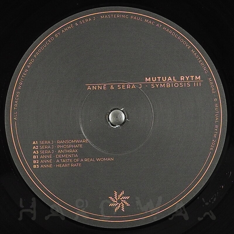EP—EP € 18Mutual Rytm 042Label CatalogSera J & Annē: Symbiosis IIIOptimized big room Techno pressure A1 Sera J: Ransomware A2 Sera J: Phosphate A3 Sera J: Anthrax B1 Annē: Dementia B2 Annē: A Taste Of A Real Woman B3 Annē: Heart Rate