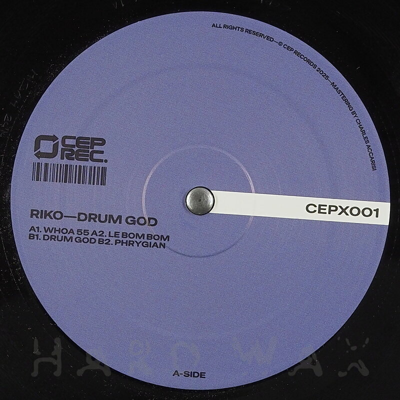 12"—12" € 15CEP 007Label CatalogRiko: Drum GodBoomy, percussive Techno action A1 Whoa 55 A2 Le Bom Bom B1 Drum God B2 Phrygian
