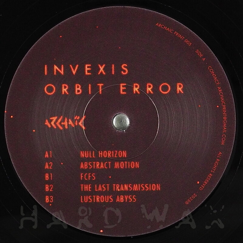 12"—12" € 19Archaic Print 005Label CatalogInvexis: Orbit ErrorVersatile, effective, driving Techno EP A1 Null Horizon A2 Abstract Motion B1 FCFS B2 The Last Transmission B3 Lustrous Abyss