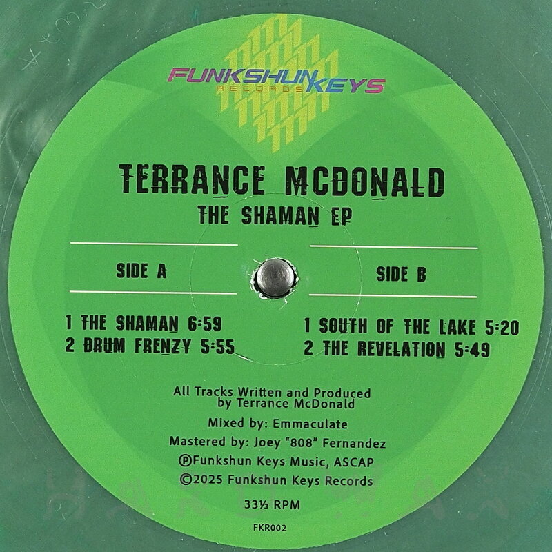 12"—12" € 18Funkshun Keys 002Label CatalogTerrance McDonald: The Shaman EPDeep hypnotic Chicago Acid House A1 The Shaman A2 Drum Frenzy B1 South Of The Lake B2 The Revelation