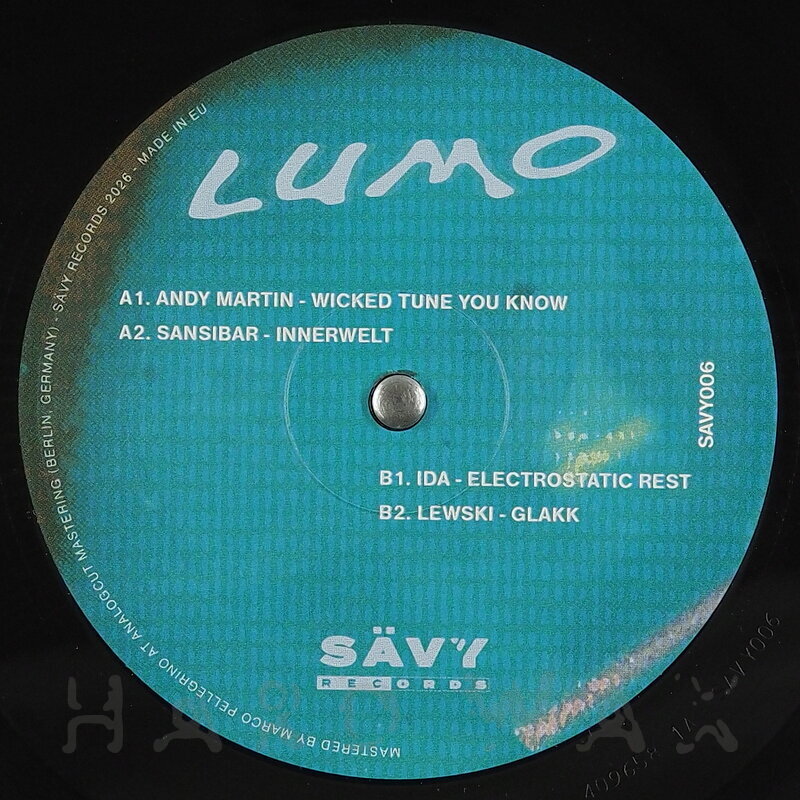 12"—12" € 18Sävy 006Label CatalogVarious Artists: LumoEffective Techno/Electro /w rolling Lewski contribution A1 Andy Martin: Wicked Tune You Know A2 Sansibar: Innerwelt B1 Ida: Elektrostatic Rest B2 Lewski: Glakk