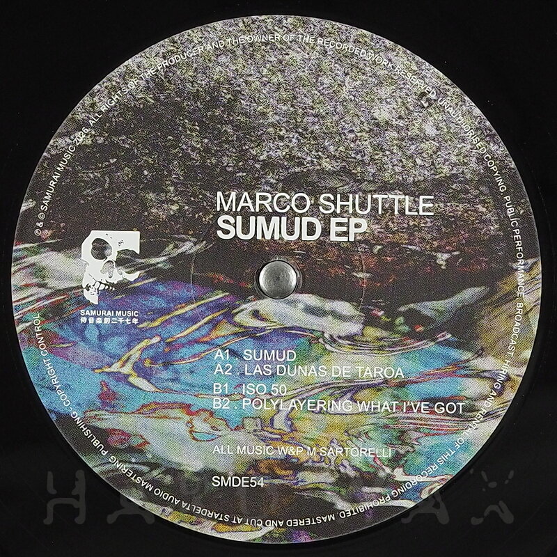 EP—EP € 15Samurai Music DE 054Label CatalogMarco Shuttle: Sumud EPPulsating Electronica/Bass patterns A1 Sumud A2 Las Dunas de Taroa B1 Iso 50 B2 Polylayering What I've Got