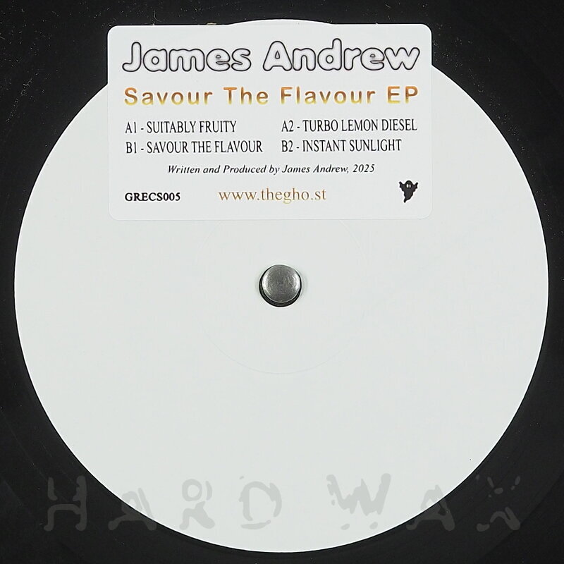 12"—12" € 18Ghost Recs 005Label CatalogJames Andrew: Savour The Flavour EPAce, uplifting, dubbed out UK Tech House / Garage groovers - one per customer only A1 Suitably Fruity A2 Turbo Lemon Diesel B1 Savour The Flavour B2 Instant Sunlight