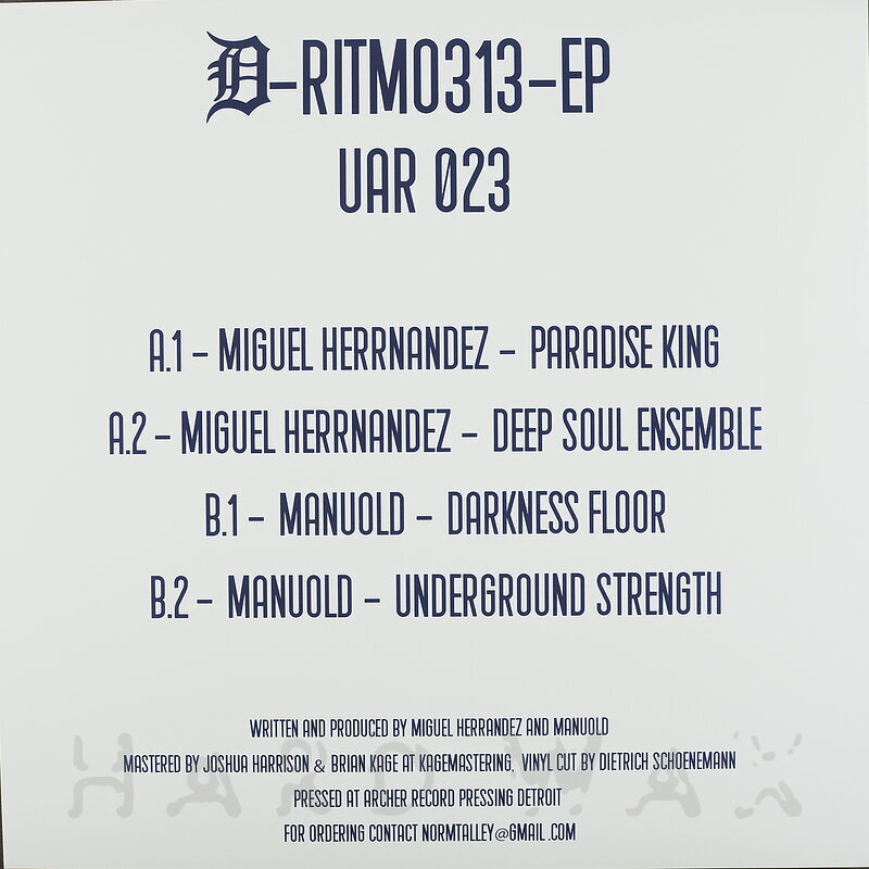12"—12" € 18Upstairs Asylum 023Label CatalogMiguel Herrnandez/Manuold: D Ritmo 313 EPBreezy, groove-driven jazzy Deep House A1 Miguel Herrnandez: Paradise King A2 Miguel Herrnandez: Deep Soul Ensemble B1 Manuold: Darkness Floor B2 Manuold: Underground Strength