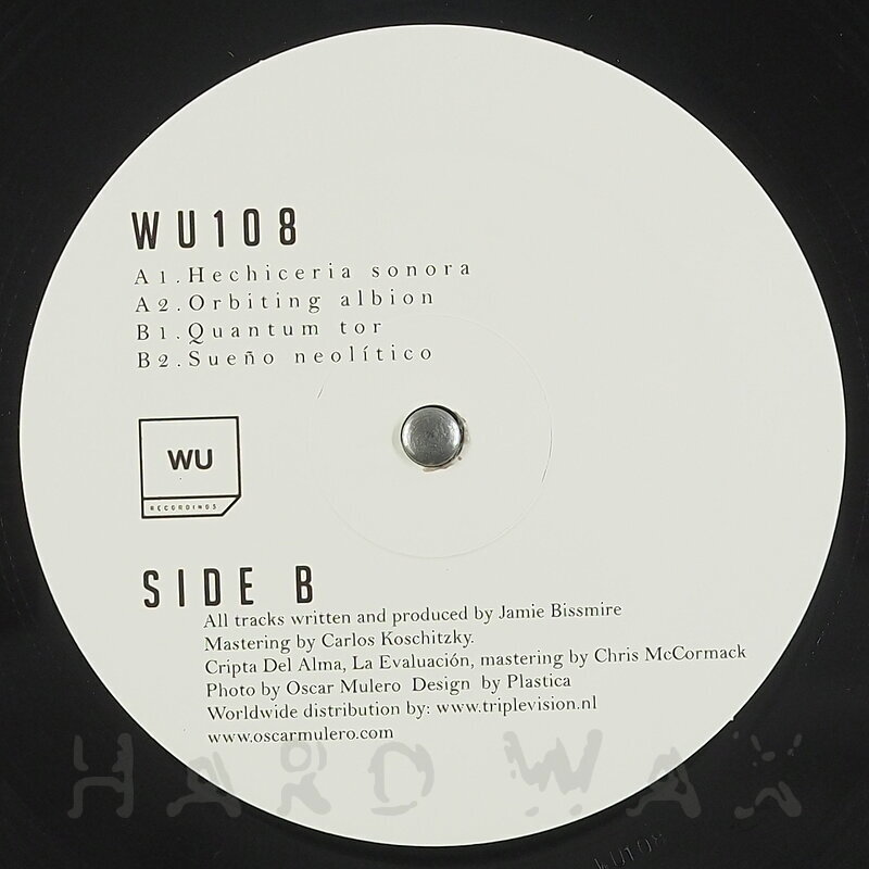 12"—12" € 15.5Warm Up 108Label CatalogJamie Bissmire: La Cripta Del AlmaBleepy, deep atmospheric Techno A1 Orbiting Albion A2 Hechicería Sonora B1 Quantum Tor B2 Sueño Neolítico