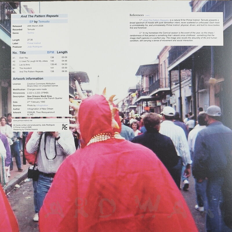 12"—12" € 16Primal Instinct 011Label CatalogTemudo: BreakthroughPlowing Techno tunes / Recommended! (one per customer) A1 Over You A2 U Used To Laugh At My Jokes A3 Lax to Ams B1 The Accident B2 And The Pattern Repeats