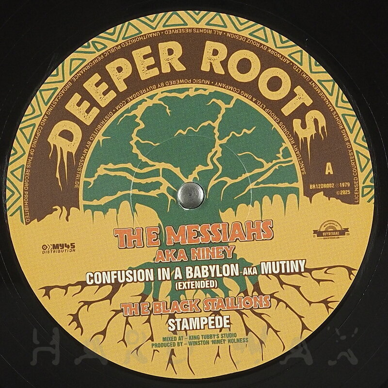 12"—12" € 19Deeper Roots 002Reggae / A03The Messiah: Confusion In A BabylonEssential late 70s roots - total killer steppers A1 Confusion In A Babylon aka Mutiny (Extended) A2 The Black Stallions: Stampede B1 George Boswell aka Niney: Jah Fire (Extended) B2 The Observers: Hotter Fire