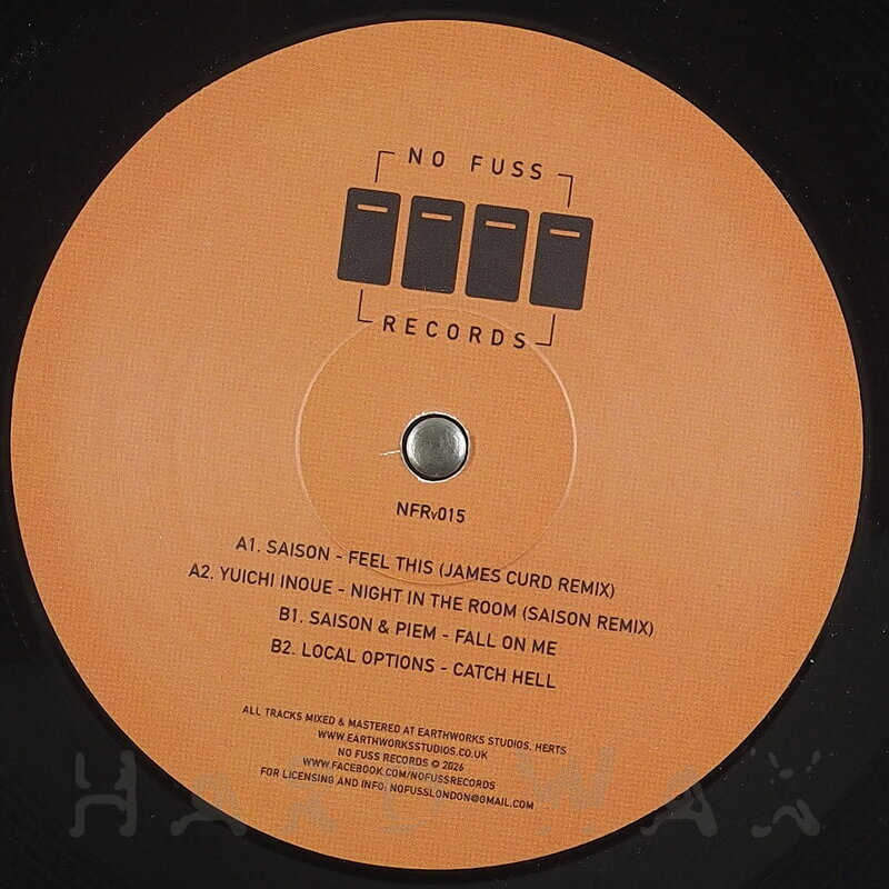 12"—12" € 17No Fuss 015Label CatalogVarious Artists: NFRV 015Driving deep house floor-filler A1 Saison: Feel This (James Curd Remix) A2 Yuichi Inoue: Night In The Room (Saison Remix) B1 Saison & Piem: Fall On Me B2 Local Options: Catch Hell