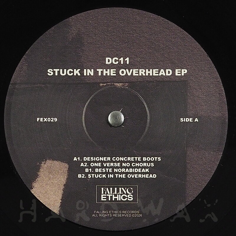 12"—12" € 15Falling Ethics 029Label CatalogDc11: Stuck In The Overhead EPEffective, stomping, trippy Techno cuts A1 Designer Concrete Boots A2 One Verse No Chorus B1 Beste Norabideak B2 Stuck In The Overhead