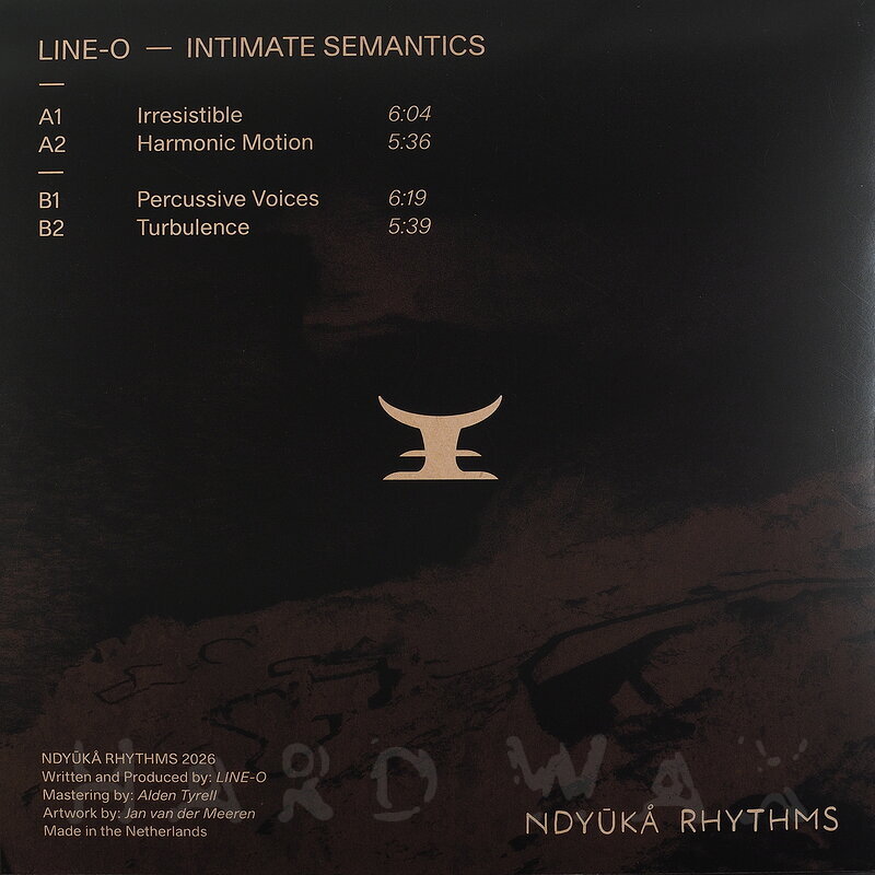 12"—12" € 19Ndyuka Rhythms 001Label CatalogLine-o: Intimate SemanticsRolling stripped back Techno A1 Irresistible A2 Harmonic Motion B1 Percussive Voices B2 Turbulence