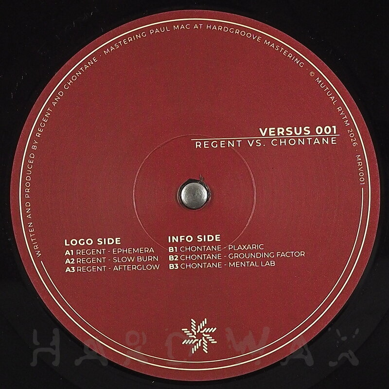 12"—12" € 17.5Mutual Rytm MRV 001Label CatalogRegent vs. Chontane: Versus 001Highly effective Techno tools A1 Regent: Ephemera A2 Regent: Slow Burn A3 Regent: Afterglow B1 Chontane: Plaxaric B2 Chontane: Grounding Factor B3 Chontane: Mental Lab